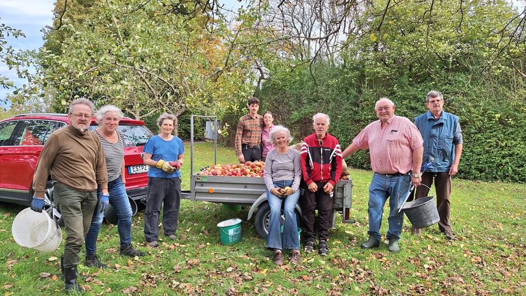 Am Samstag 4.10. trafen sich schlussendlich 10 HelferInnen am Friedhof in Oberboihingen um dort bei den Gemeindebäumen für unsere Aktion Obst aufzulesen. Innerhalb kürzester Zeit war der Hänger voll, sodass noch 5 Säcke herhalten mussten und auch noch gefüllt wurden.